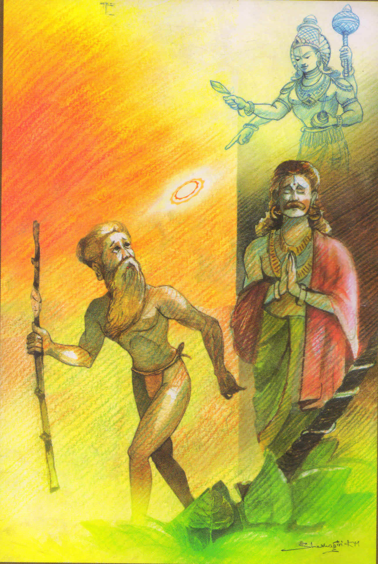 टेकते मे स्वान्तपथे नाभागतनूजः विष्णुपाणिनुन्नसुदर्शनरक्षितः तपोगभस्तिसूर्यः आनन्दितानन्दः चन्दनाङ्गदः अम्बरेश इव भ्राशमाणः शम्बरारिपत्तनगतरथः सम्भप्रादुर्भूतनरहरिपदासक्तः ऐक्ष्वाकुरम्बरीषाह्वयः । सोऽयम् अध्यैष्ट श्रुतिस्मृतिनेत्रान् शास्त्रग्रन्थान् । इयाज देवद्रविणानि । अपारीत् पितॄन् । प्रावृषेण्याभ्रसमवाग्झरीः जनपापपयस्पाशाग्राही अंशुमालीव विभ्राजमाणः छान्दसोऽयं बाहुजः कदाचित् कृतैकादशीव्रतः पारणाय दुर्वाससमतिथिं मेने । तपश्चणः कणकणेषु दृष्टदेवरूपः द्वादशीप्रत्यूषे स्नातुमभ्यटेकत । चिरादनागते सति तपस्विपुङ्गवे व्रतभङ्गसाध्वसात् स्वीचकार दैत्यारिपादकीलम् । ज्ञातवृत्तान्तः ऋषिः अवकृन्तयतित्वा सटां विससर्ज रक्षः । सैकक्षणे पाटलकोमलवनमालिकरप्रयुक्तः अमिताहस्करप्रतिमतीक्ष्णारहस्रवान् दुष्टेरदृष्टः सुदर्शनः अमोडत् राजघ्नम् । ततः दुर्वाससं हिंसितुं परिवर्तितमार्गः तमधावयत् । भीत इव भगवत्पादरजोभिषिक्तो व्रती ब्रह्माणमुपाटिटेक । पदं मदीयं सह क्रीडावसाने विनाशमुखं याति येन तन्नुन्नं कोऽपि न रुणद्धि ऋते आदिदेवमिति धात्रा श्रुतवाक्यः प्रपेदे लोकशङ्करं त्रिशूलकरम् ।